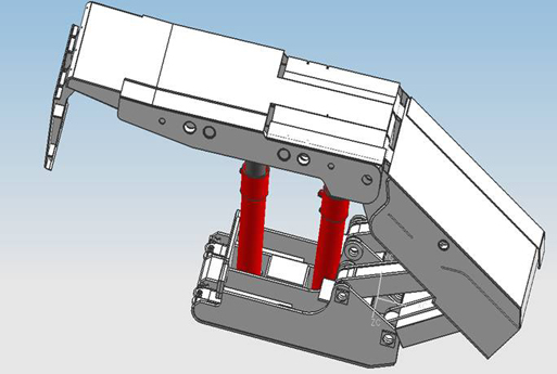 四柱輕型支撐掩護(hù)式液壓支架一般才高都比較小,本架型可以填補(bǔ)這段才高的空白。在架寬相同的窄架型中,本架型人行道和機(jī)道之間的過道寬;由于雙道排矸,所以排矸能力強(qiáng);由于單推桿偏置,所以可以減小傾斜工作面移架時(shí)的下滑量。由于本架型較窄、較輕搬運(yùn)方便,所以適用于在搬家較頻繁的工作面中使用。